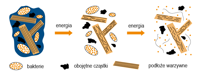 rozkład biomasy przez proces kawitacji,