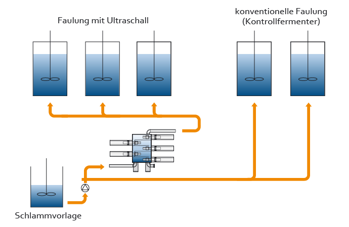 praxisnahen Bedingungen die Auswirkungen der Ultraschallbehandlung auf den anaeroben Abbau von Schlämmen und Biomassen präzise zu ermitteln.