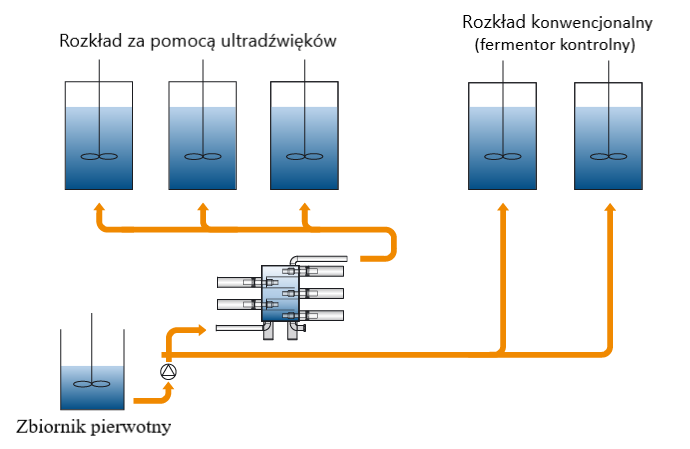 Poprzez ultradźwięki rozdzielana jest ciężka do rozłożenia biomasa bakteryjna,